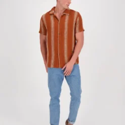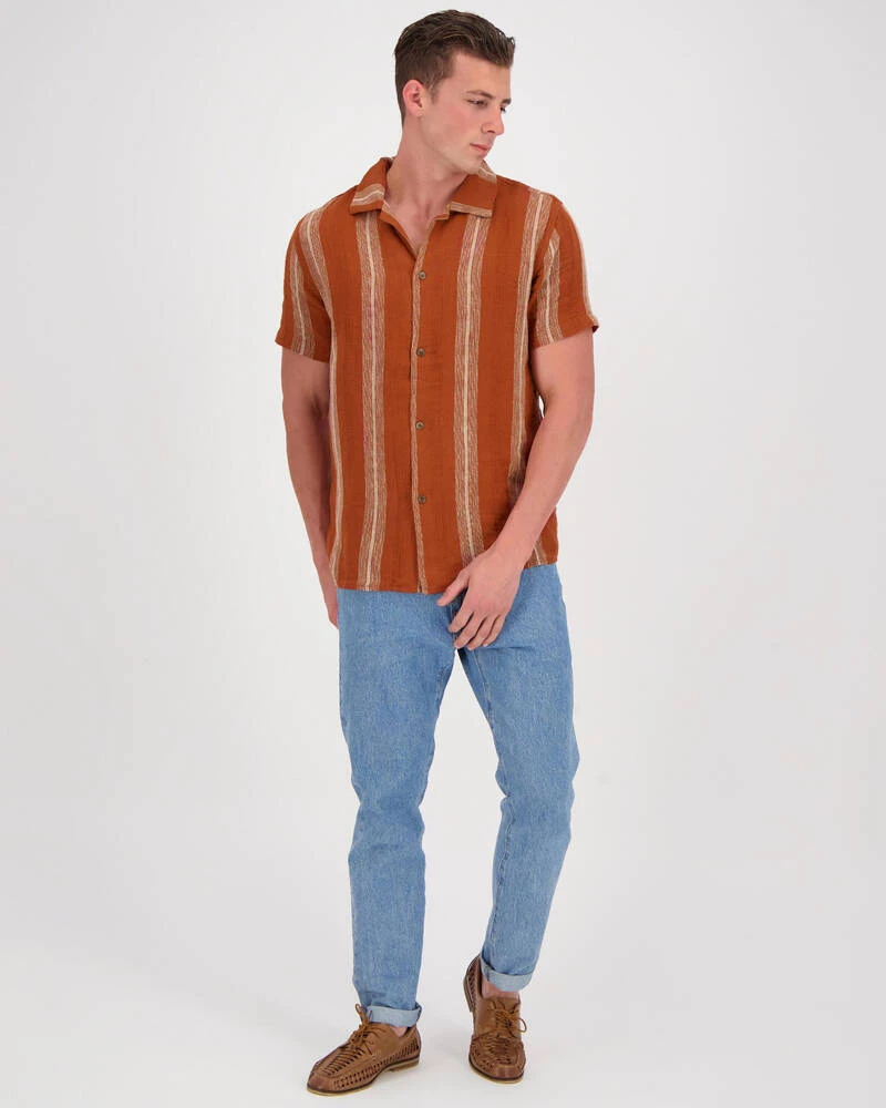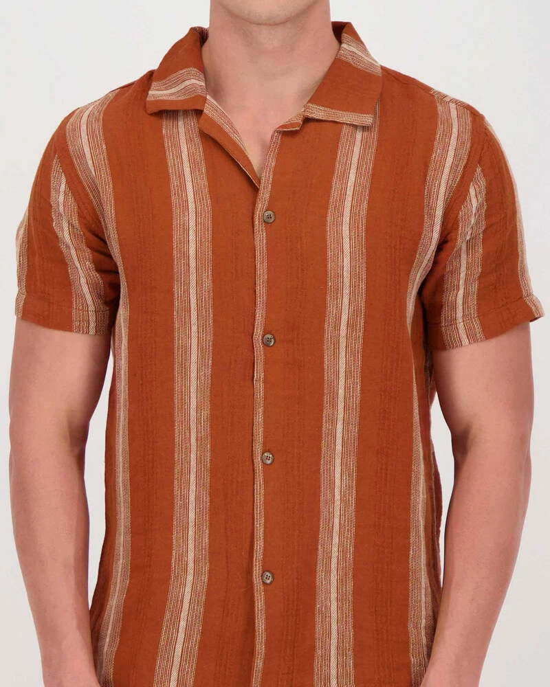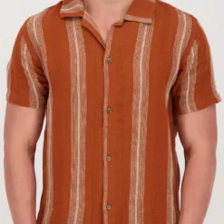 Mens Vacation Stripe Short Sleeve Shirt